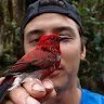 I walk along the mossy earth looking up, my headlamp beaming. The crown shyness of the ‘ohi’a trees form river deltas of black night sky that sway in the wind. I follow the trills and try and get close. I try climbing lower trees to reach the singing insects, but as I get closer the trilling stops. I don’t think they like the light. I put out my headlamp. I wait for what feels like minutes but is likely only seconds until the male crickets begin singing again. I do what I can with no light to continue my approach until I feel close enough. On goes the headlamp, and off goes the cricket’s song. Where are they? I just can’t get high enough. Let’s try the next tree.